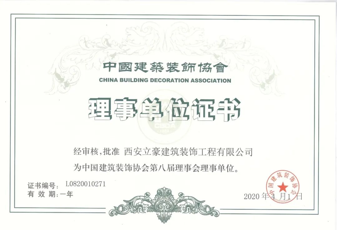 立豪集團(tuán)榮升中國建筑裝飾協(xié)會理事單位